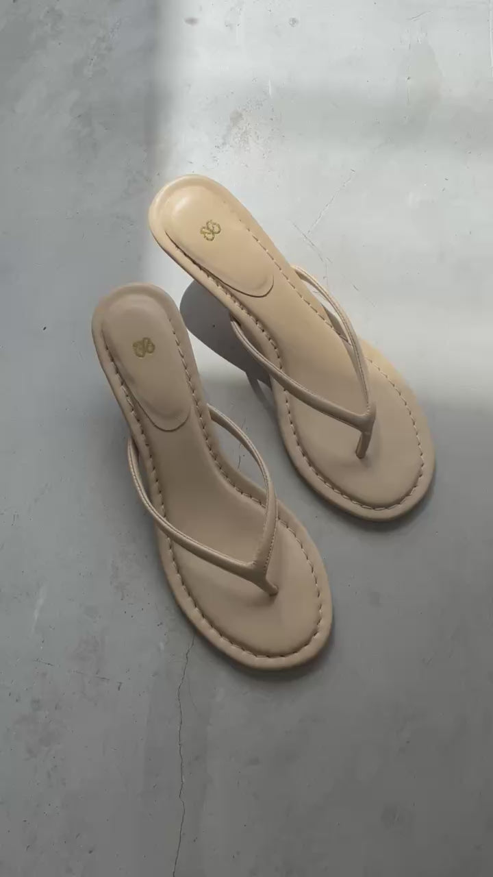 The sleek thong silhouette elongates the leg, while the curved mini-heel adds subtle height without sacrificing comfort - perfect for all-day city looks, dinners, or your minimalist vacation wardrobe.